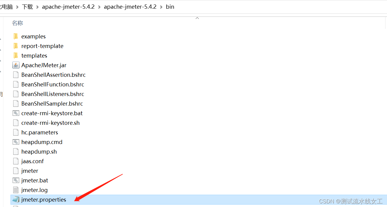 ** 👉🏻**如果想修改成中文模式,找到jmeter文件夹中bin目录下的jmeter.properties文件,将文件中的