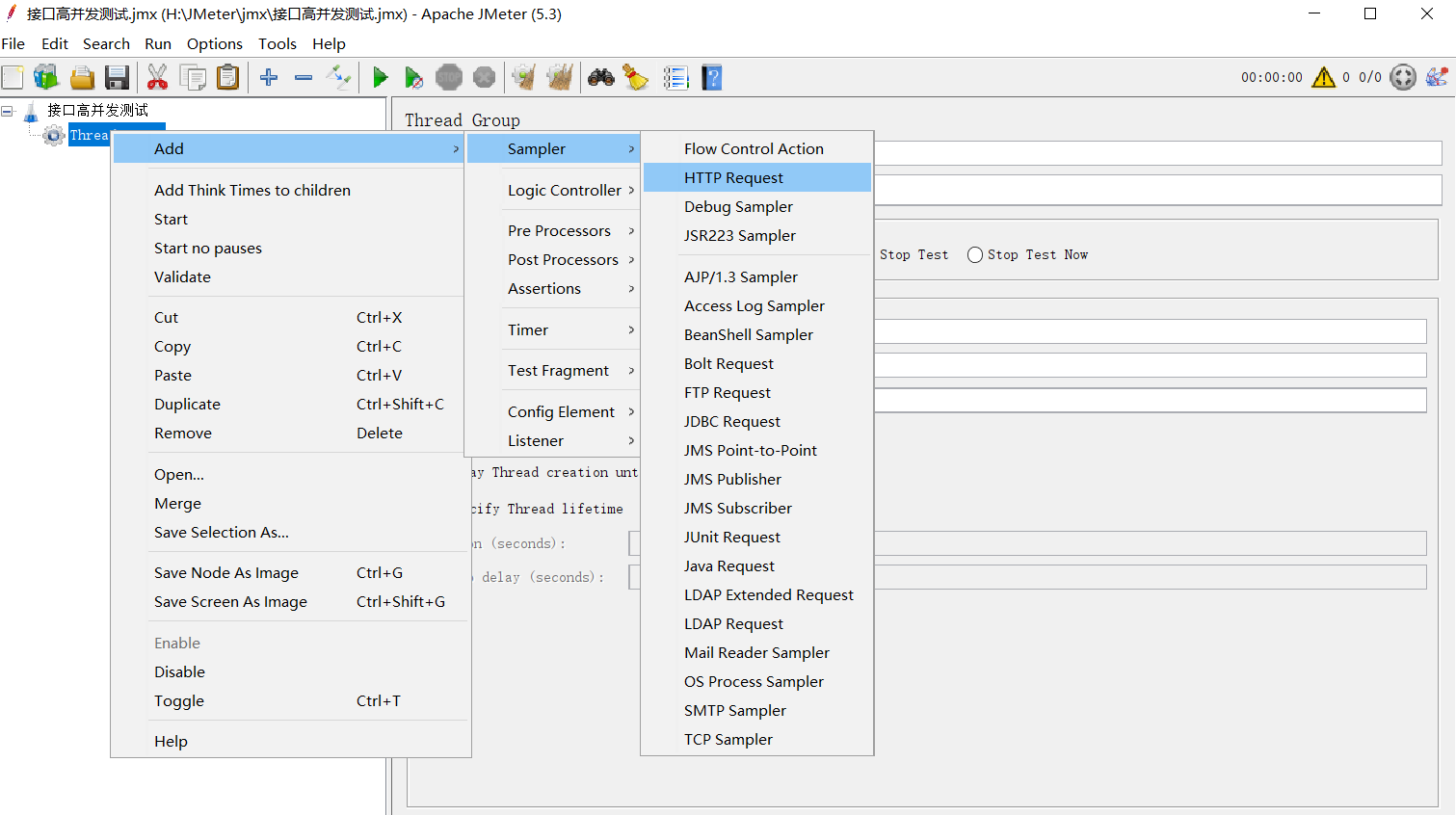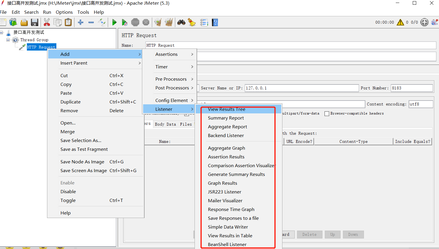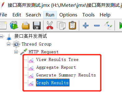依次添加察看结果树、聚合报告、生成概要结果、图形结果