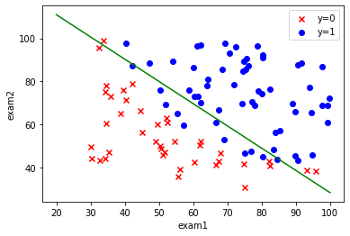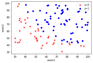 ax.set_xlabel('exam1')#设置坐标轴标签
