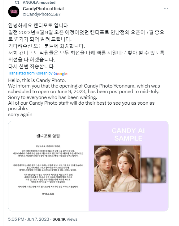 在 Maroo AI 上线之前,一家名叫 Candy Photo 的“大头贴”拍照体验馆同步在韩国弘大延南洞紧急筹备中。根据点点数据,Maroo AI 的 iOS 开发者账户是 Studio SJ。通过开发者预留信息,可以看到 MarooAI 和 Candy Photo 是同一家厂商的手笔。二者社媒账号的紧密互动也侧面证实了这一点。