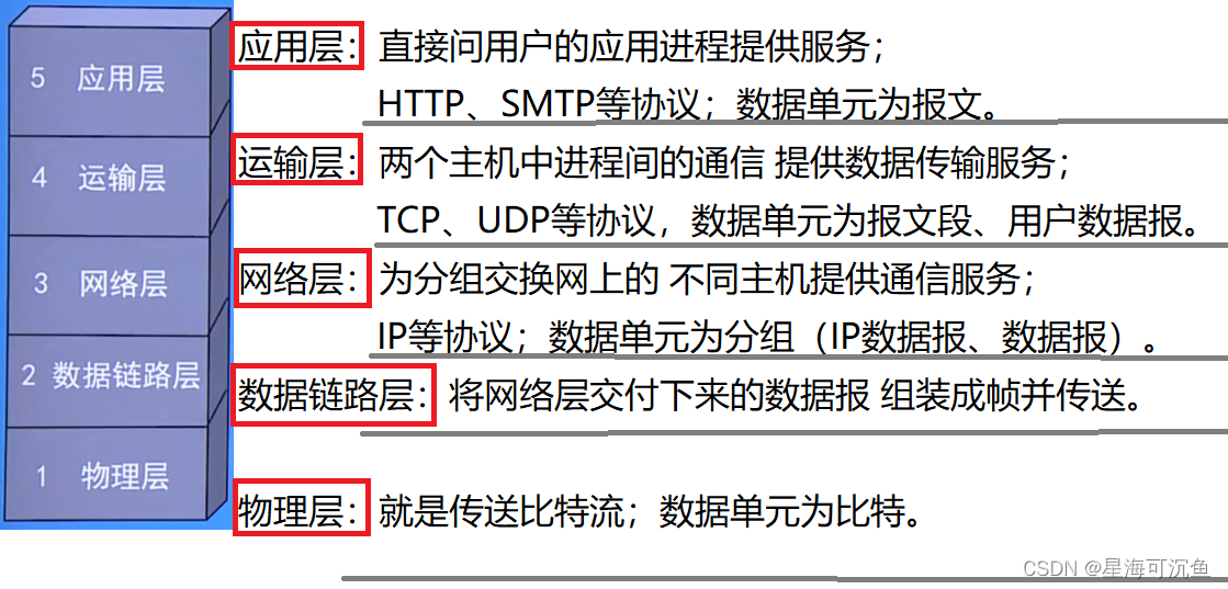 - 各层协议 实际上就是 在各个对等层之间传递数据时的各项规定。