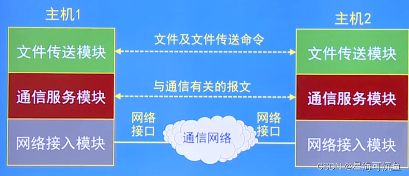 以主机1和主机2通过网络传送文件为例,说明网络分层原理: