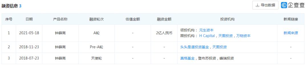 数据显示,钟薛高已完成了4轮融资,其中两次发生于2018年。