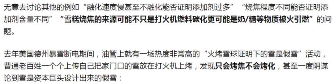 随着舆情的进一步发酵,大量自媒体开始整活,用火烧,用蜡点,然后进一步宣告其在高温下不但不融,反而是变黑变焦,再次扩大了品牌负面影响。