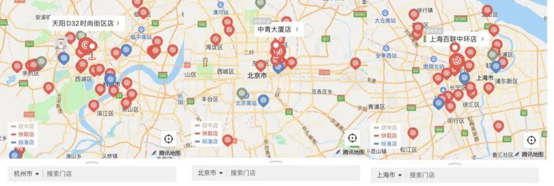 实际情况也是如此,目前库迪咖啡并没有把开40-150平方米的标准店作为首选。库迪咖啡小程序数据显示,在北京、上海、杭州等一线城市,主要布局的还是40平方米左右的快取店,再零星坐落几家标准店和店中店。