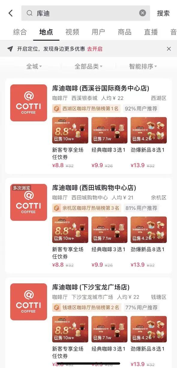 锌财经发现,在抖音等App上,还可以买到8.8元的新客专享全场任饮券。和市场上动辄二十多元的其他连锁咖啡比,现阶段,库迪咖啡跟白送一样。