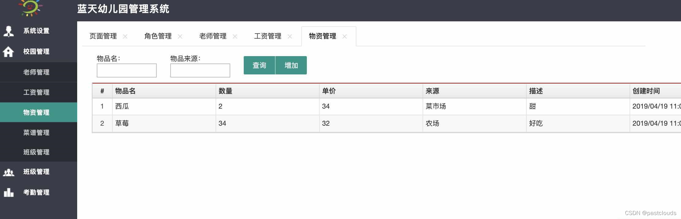 校园管理-老师管理、工资管理、物资管理、菜谱管理、班级管理
