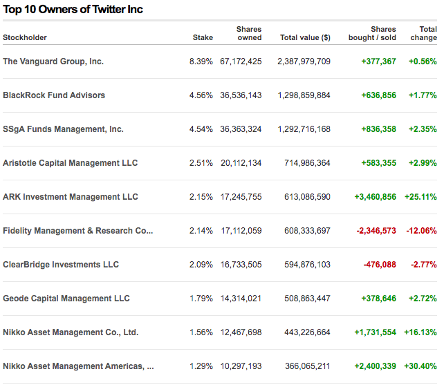 *马斯克买入股份前推特股东信息,图源CNN商业 *