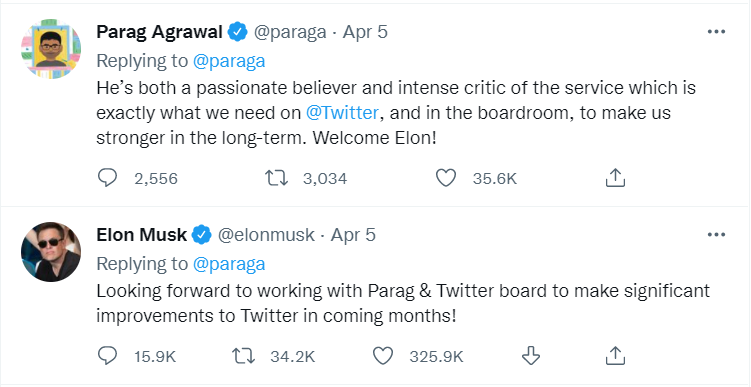 由于马斯克说出了这样的回应,在业内看来,虽然马斯克愿意接过推特董事会递来的橄榄枝,但或许也没有放弃想要改造和掌控推特的野心。