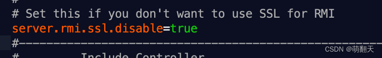 将server.rmi.ssl.disable参数设置为true,并且取消注释