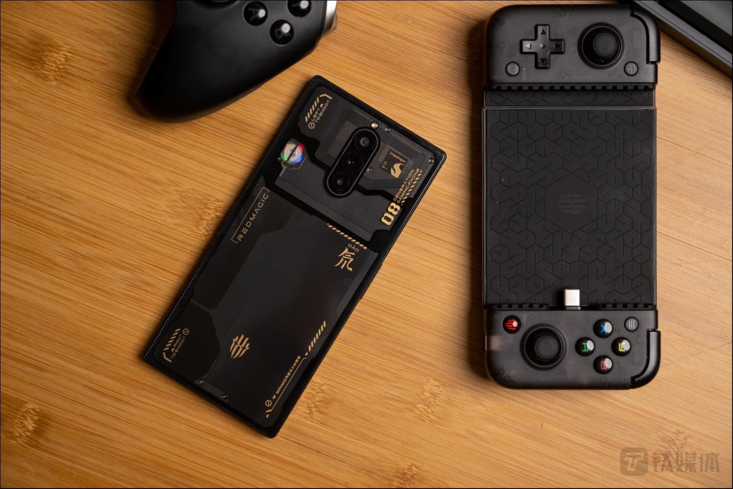 红魔8 Pro+在产品发布的同时,也推出了可以应用于产品的外设配件:红魔影刃手柄,从整体外形上来看,它与传统的手机外设有很大的差异性。首先是整体的设计,正面除了双摇杆和常见操控按键以外,多了4个功能按键,加上顶部4颗按键与背部按键,整体布局与数量都向掌机看齐。