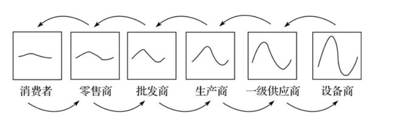 举个例子。假定全球消费者对计算机的需求预测轻微增长2%,传递到制造商时就可能成了5%,传递到英特尔(一级供应商)时则可能是10%,而到了英特尔的设备商(次级供应商)时则可能变为20%。