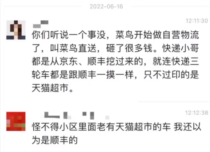 近日,网传:“菜鸟开始做自营物流,叫菜鸟直送,砸了很多钱”“从京东、顺丰挖了不少人”。