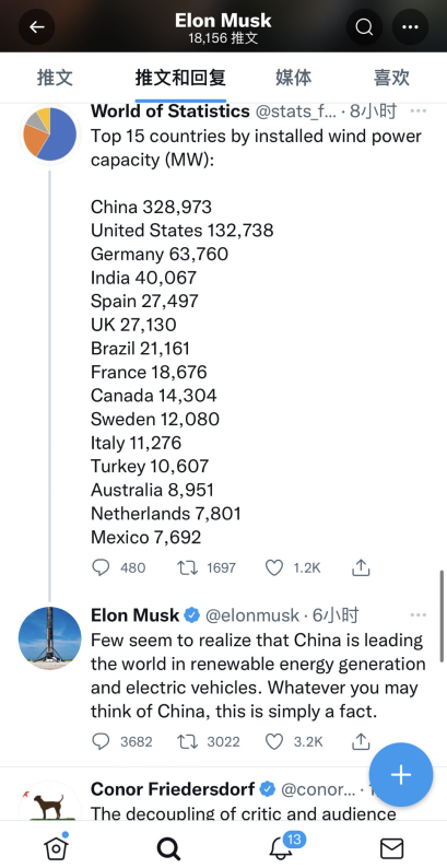 就在马斯克宣布裁员的前几天,5月30日,马斯克再次在推特和微博发文表示:中国在可再生能源发电和电动汽车领域正处于世界领先地位。无论你怎么看中国,这都是事实。
