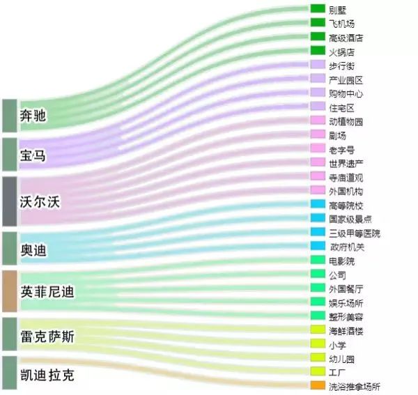 比如,高德地图曾经发布过一份报告称,奔驰用户住别墅的比例较高;宝马用户喜欢购物,多去往步行街或大的购物中心;沃尔沃用户爱好文艺,奥迪用户多体制内人员;英菲尼迪用户在西餐、美容、娱乐消费方面较突出。