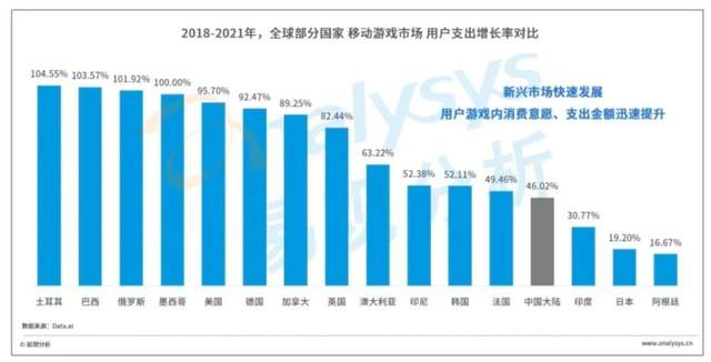 比如俄罗斯,因为受战争影响,Google 和 Apple 冻结了该国支付流程,一度导致俄罗斯在东欧游戏支出中的占比份额从 50% 下降到了 10%。另外,印度等地对中国互联网应用的封禁,也导致2021年来中国应用出海下载量在南亚明显下降,降幅达22.2%。