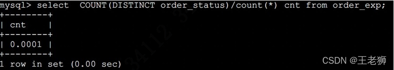 select COUNT(DISTINCT order_status)/count(*) cnt from order_exp;