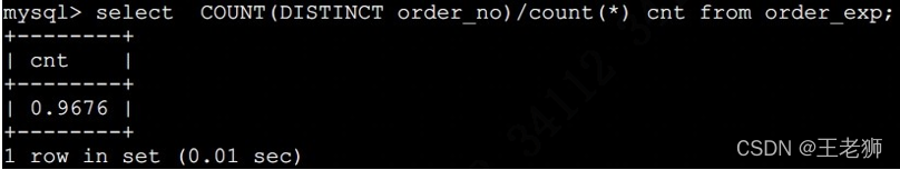 select COUNT(DISTINCT order_no)/count(*) cnt from order_exp;