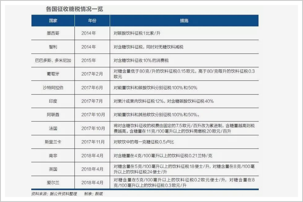 与此同时,各国政府还开始了对含糖饮料的管控。