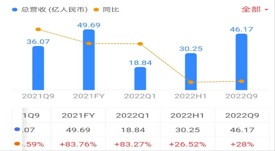 但是,舍得酒业去年的业绩增速已经出现了明显地放缓。财报显示,2022年前三季度,舍得营收约46.17亿元,同比增长28%,2021年同期则高达104.54%,增速的回落幅度要明显大于山西汾酒等市场上其他酒业。