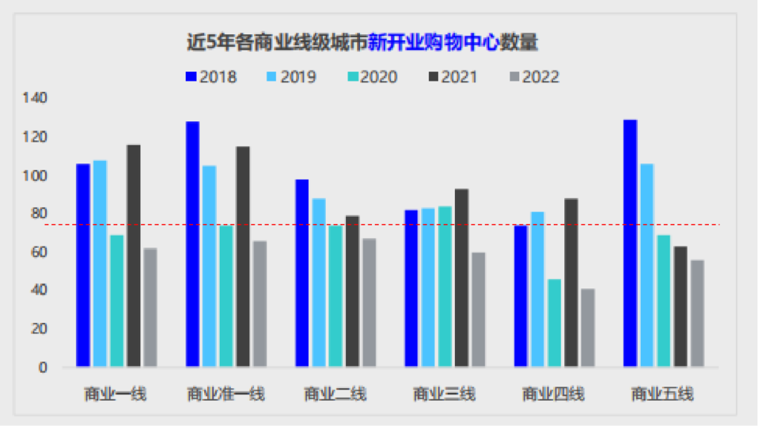 放眼全国,2018年至2022年,商业一线城市存量高而增量较低,面临大量同类高度竞争,客流和销售的高增长盛况不再,弱势项目开始岀现大量空置现象。而商业二三线城市呈现存量与增量双高趋势,商业发展提速明显。