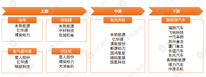图3:氢燃料电池系统产业图谱 来源:火石创造产业数据中心