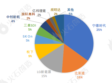 国内企业市场份额明显增加。TOP10中,国内企业由2019年的4家增加至2023年Q1的5家,市场份额也大幅增加。特别是宁德时代市场份额由27.9%增加至35%,长年占据全球出货量第一位。比亚迪也由9.5%增加至16.2%,超越LG、松下,跃升至全球出货量第二位。