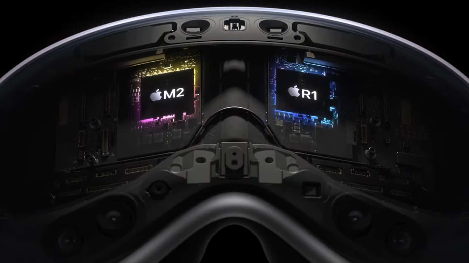 為了提供強勁的效能,Vision Pro 採用了 M2 晶片配合全新 R1 晶片,用於分析輸入和處理顯示,而畫面達到 2,300 萬像素,每邊像素超過 4K,確保文字等內容也可以精細地顯示。