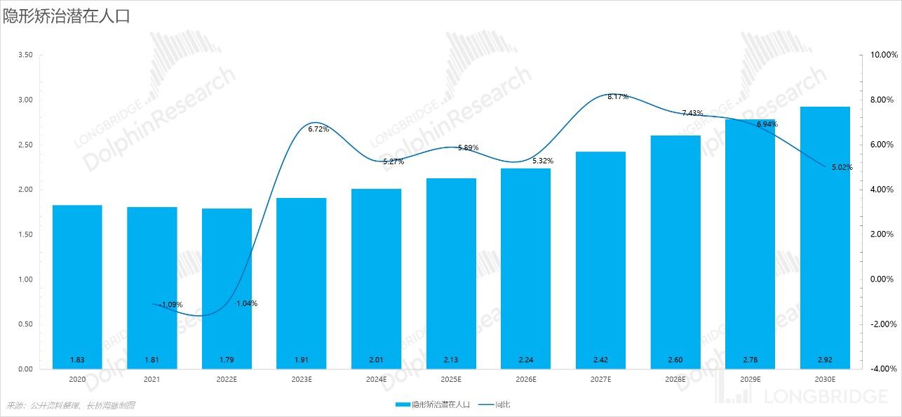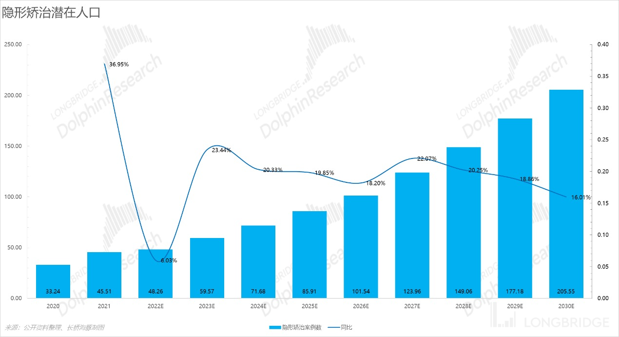 3)海豚君认为正畸矫治率受经济和疫情的影响并没有快速的提升,但是预计 25 年至 30 年提升速度将快于 25 年之前;