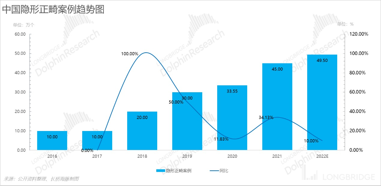 其中,在时代天使口腔隐形正畸案例市占率本已较高的情况下,赛道能做到多大是一个更重要的问题,海豚君本篇重点解决第一个问题,下篇会解决第二和第三个问题。