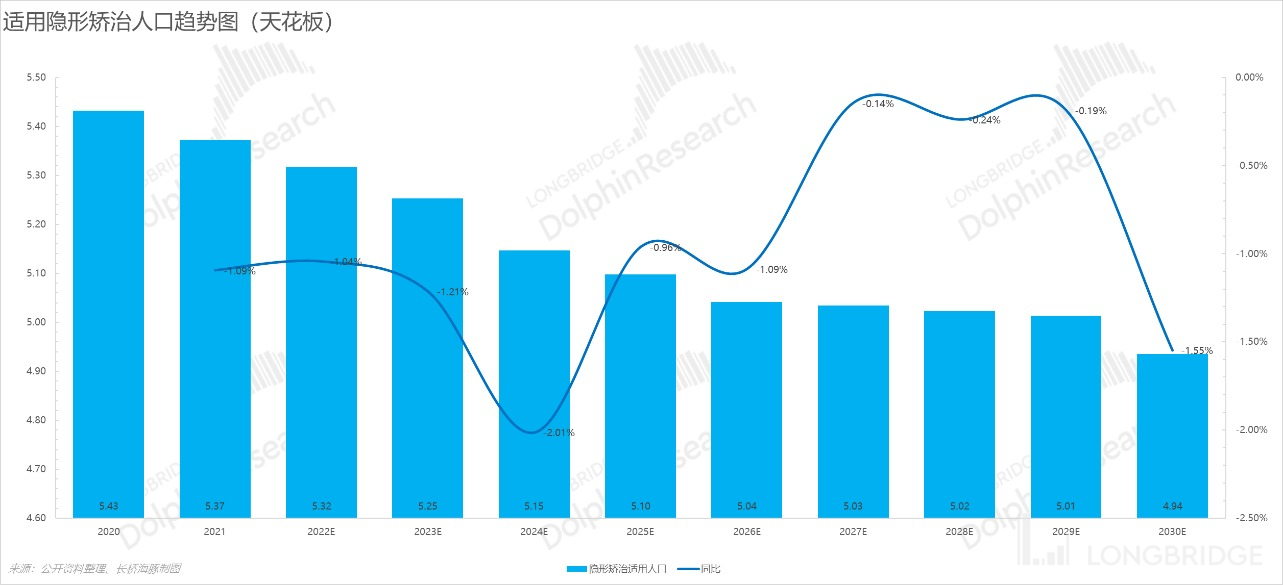 1)海豚君考虑了 2025 年之后人口出现下降的情况,也就是在错颌病发率不变的前提下,错颌患者人数是下降的;