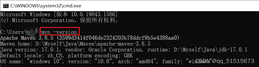 输入命令:mvn -version回车,出现以下信息即为成功。