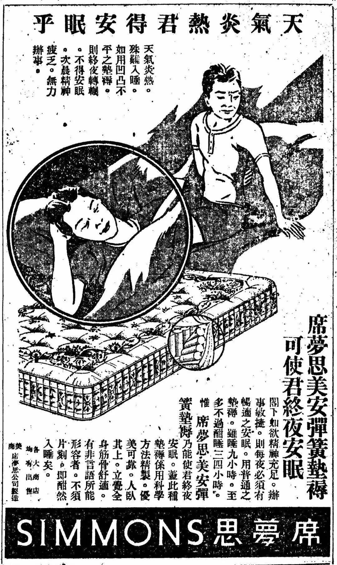 这则近百年前出街的广告,来自在中国家喻户晓的席梦思。早在1870年就发明了弹簧床垫的扎尔蒙·席梦思不会想到,自己的名字能够在遥远的东方成为弹簧床垫的代名词。即便到现在,“席梦思就是弹簧床垫”这样的结论依然刻在很多国人的认知中。