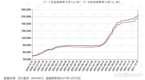 最值得直接的便是锂矿,碳酸锂的价格年初的4万元左右/吨,已经上涨至近30万元/吨,并且还有继续上涨的趋势。