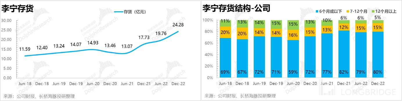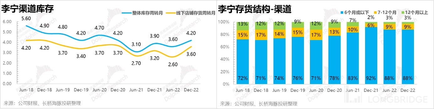 之前的深度报告《李宁的 “周期劫” 还要熬多久?》中海豚君提到过,在上一轮库存周期的去化过程中,李宁用了比友商更长的时间来消化。痛定思痛,本次库存周期李宁和同行相比要偏低一些,包袱并不算太重。