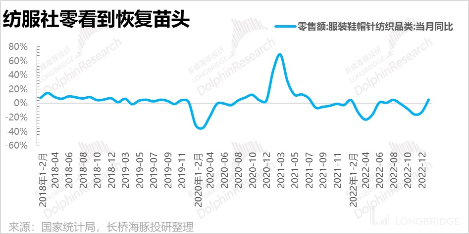 未来展望,目前线下零售客流逐渐在恢复已经成为既定事实。近期统计局发布的 1-2 月社零数据,整体增速 3.5%,服装增速 5.4%,服装是社零分类里增速比较高的,并且去年的基数由于冬奥会的在京举办,并不是一个低水平。