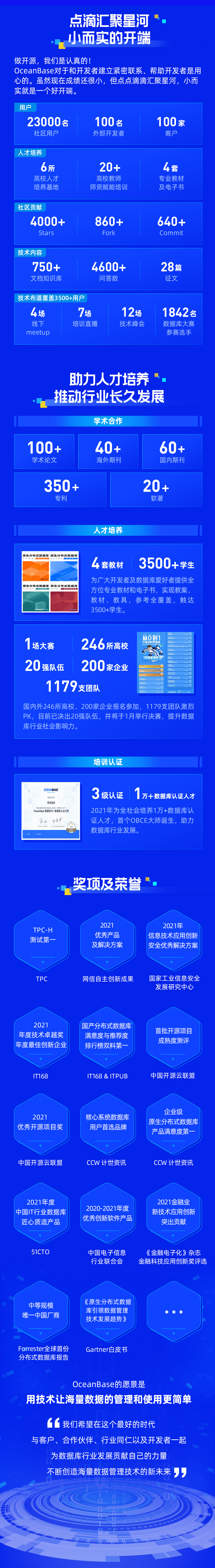 • 为全社会培养输送1万+ OceanBase 认证数据库人才。