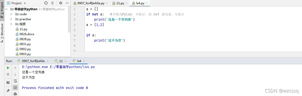 5、判断是否为空列表、空字典、空字符串,可直接比较==、长度为0len()=0、not [],经常用not