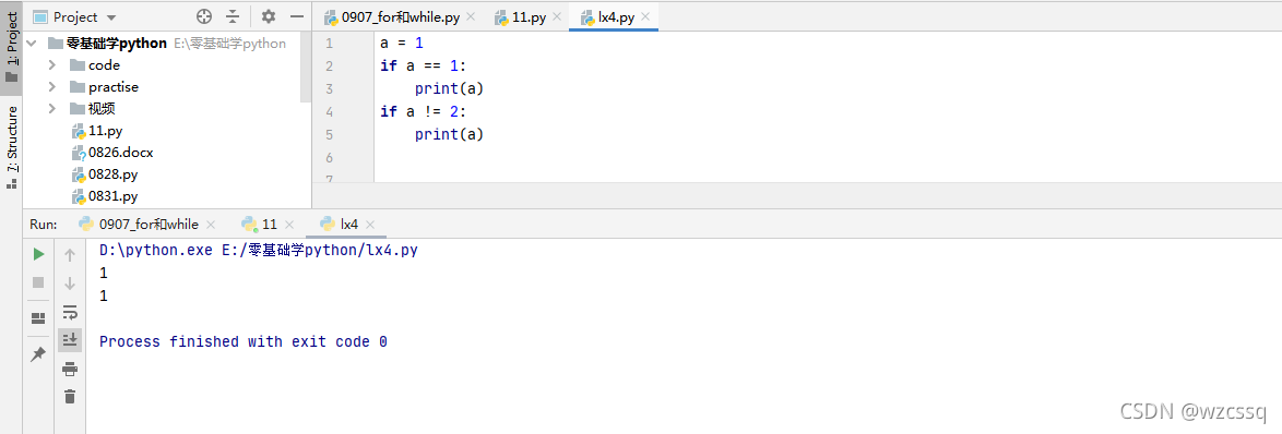 4、if后面的条件是布尔型,即True、False,为真则执行,为假则不执行,条件一般为逻辑运算(and、or、not)、比较运算、in成员运算,