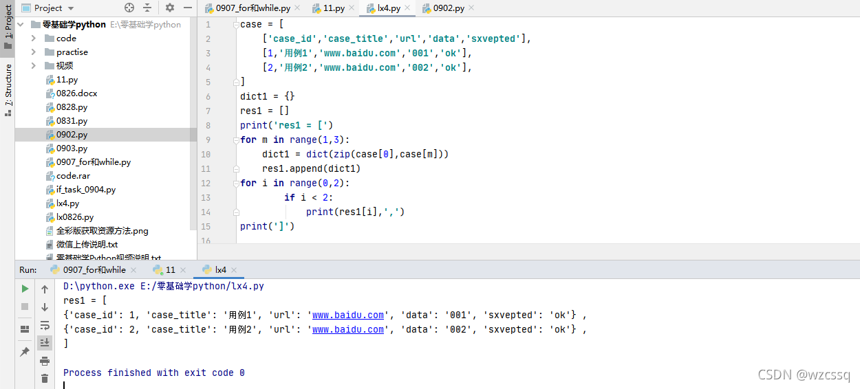 6、for循环的自动化测试实际使用,用于遍历测试用例,将列表嵌套列表形式的测试用例转换为列表嵌套字典的形式