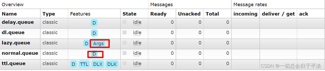 但是RabbitMQ呢是内存存储的,如果说在高并发的情况下消息量非常的大,这些消息我们如果都给它丢到内存当中,显然是不合适的,所以我们就要学习一个惰性队列来解决这个问题!
