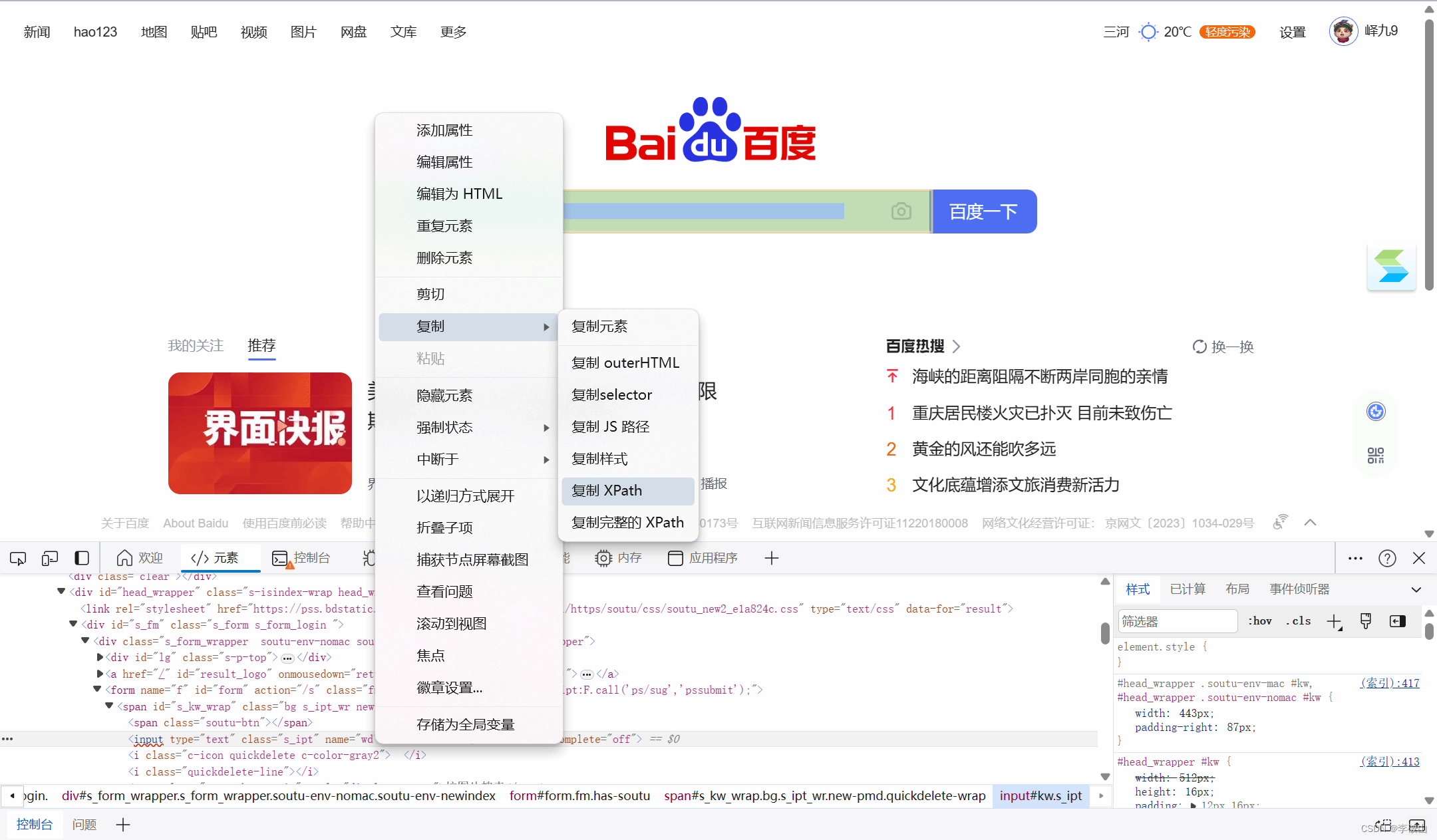 在页面用指针找到对应元素后可直接右键复制Xpath,而且程序不容易认错