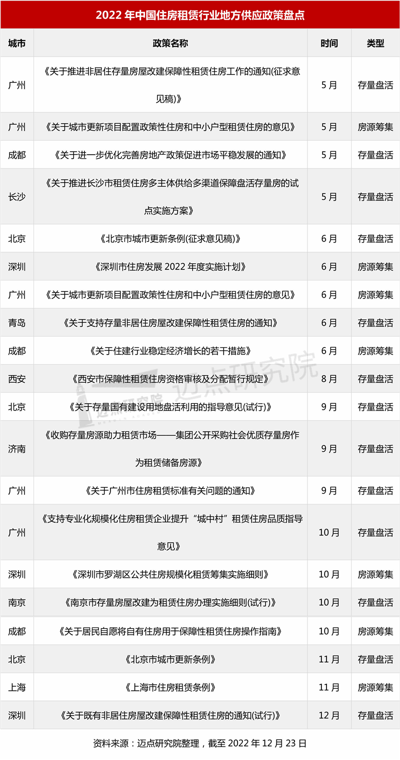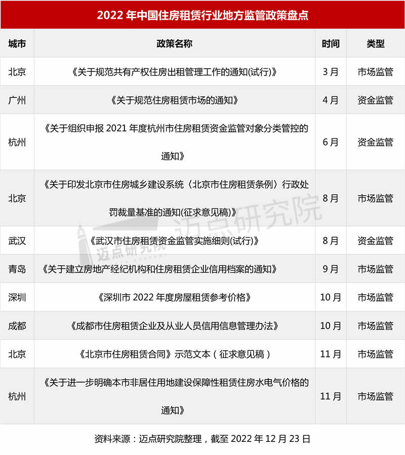 地方监管政策动态方面,随着前期市场监管政策的发布与落实,2022年多城市重点聚焦租赁监管政策打补丁,着重制度建设和运营监管,以期防范风险、保证供应。