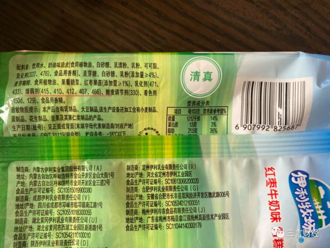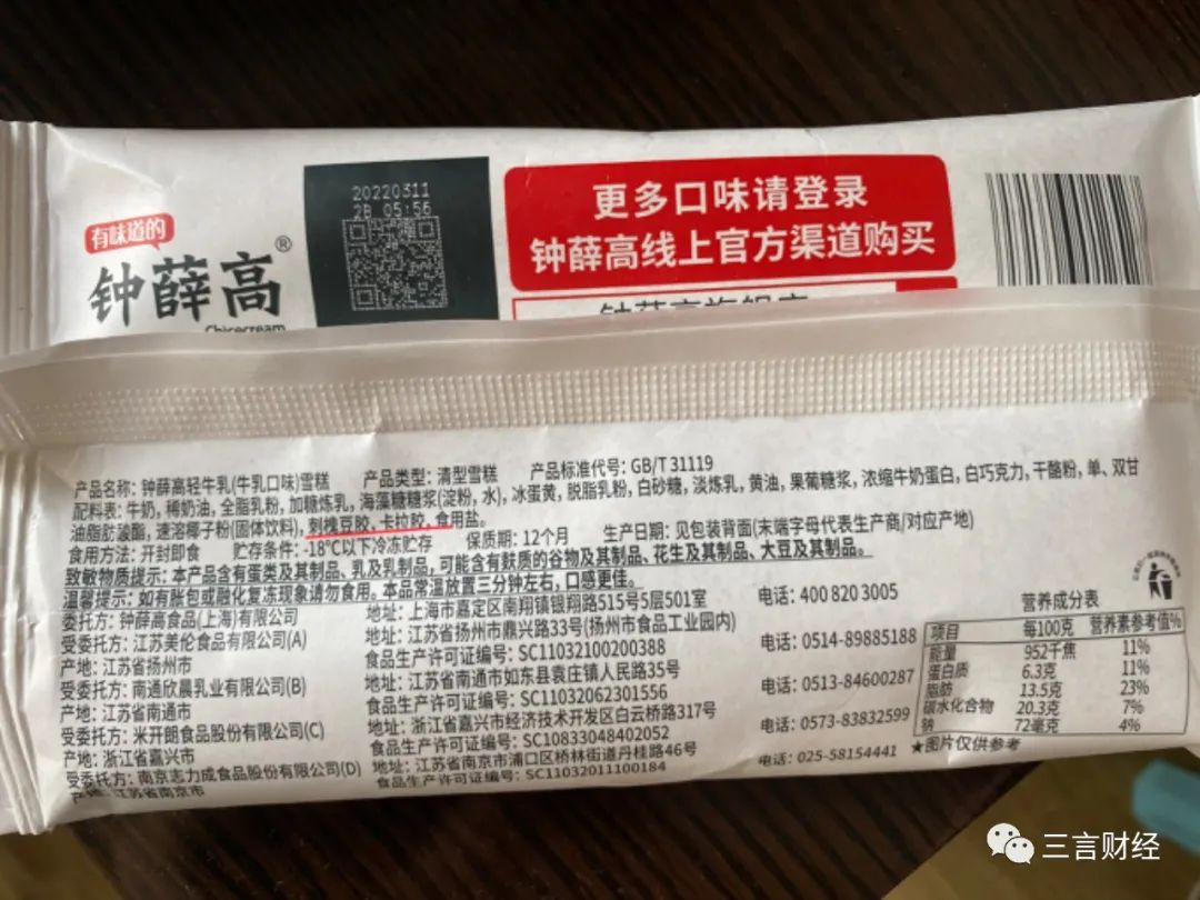 在今天测试中,三言总共买的十几种雪糕中,除了钟薛高和大白兔雪糕外,其他所有不同口味的雪糕在配料表中都标明了核心口味添加量。
