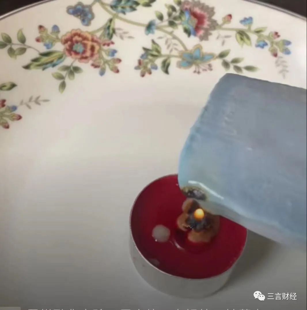 接受测试的第二款雪糕是伊利小雪生。这款雪糕在一接触火苗便立刻融化,甚至在测试中直接浇灭了火苗。