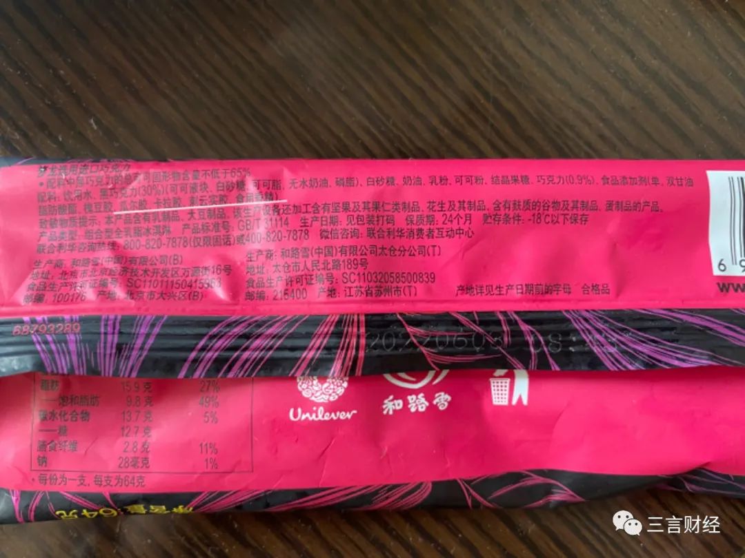 举例来说,比如梦龙巧克力口味的雪糕,配料表写明了巧克力含量为30%;主打葡萄口味的雪糕配料表中标明了葡萄含量比重。