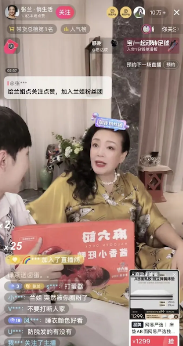 在过去的一个月里,围绕着儿子汪小菲和前儿媳大S在社交平台的进展,张兰在直播间精准玩梗,在掌握流量密码的同时,也精准捕捉到了商机,在销售麻六记旗下的产品之时 ,还卖起了卤蛋、软饭、床垫、绿茶等产品。尤其是在卖床垫时,张兰在直播间声称“拥有10年的售后,如果离婚可以拿着离婚证来免费换新。”外加张兰即便是阳了也坚持直播,被网友赋予了“战兰”的称号。