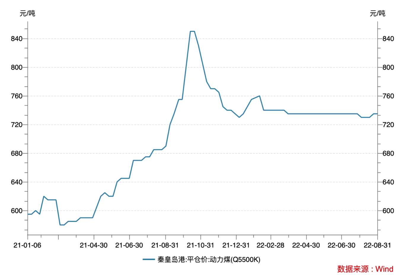 就秦皇岛港动力煤(Q5500K)平仓价来看,2021年1月初,动力煤平仓价为595元/吨,而去年10月暴涨至850元/吨后,截至6月末回落至735元/吨,不过相比去年上半年仍处于高位。