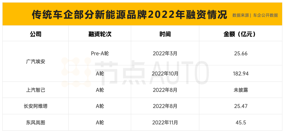 其中,广汽埃安在A轮拿下了高达182.94亿元融资,刷新了未上市中国新能源汽车行业纪录。2022继蔚小理之后,零跑实现了IPO。威马、哪吒等筹备已久。