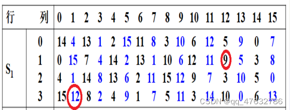 - 每个S盒是4行16列矩阵,每行定义一个可逆代换